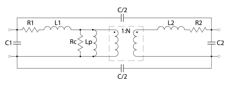 The performance of RF transformers can be understood with the help of the equivalent circuit in Figure 8: